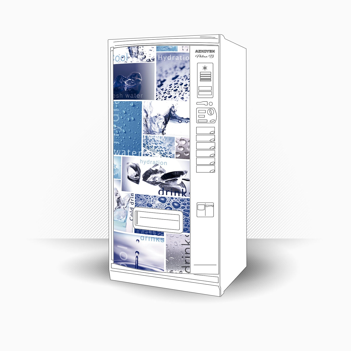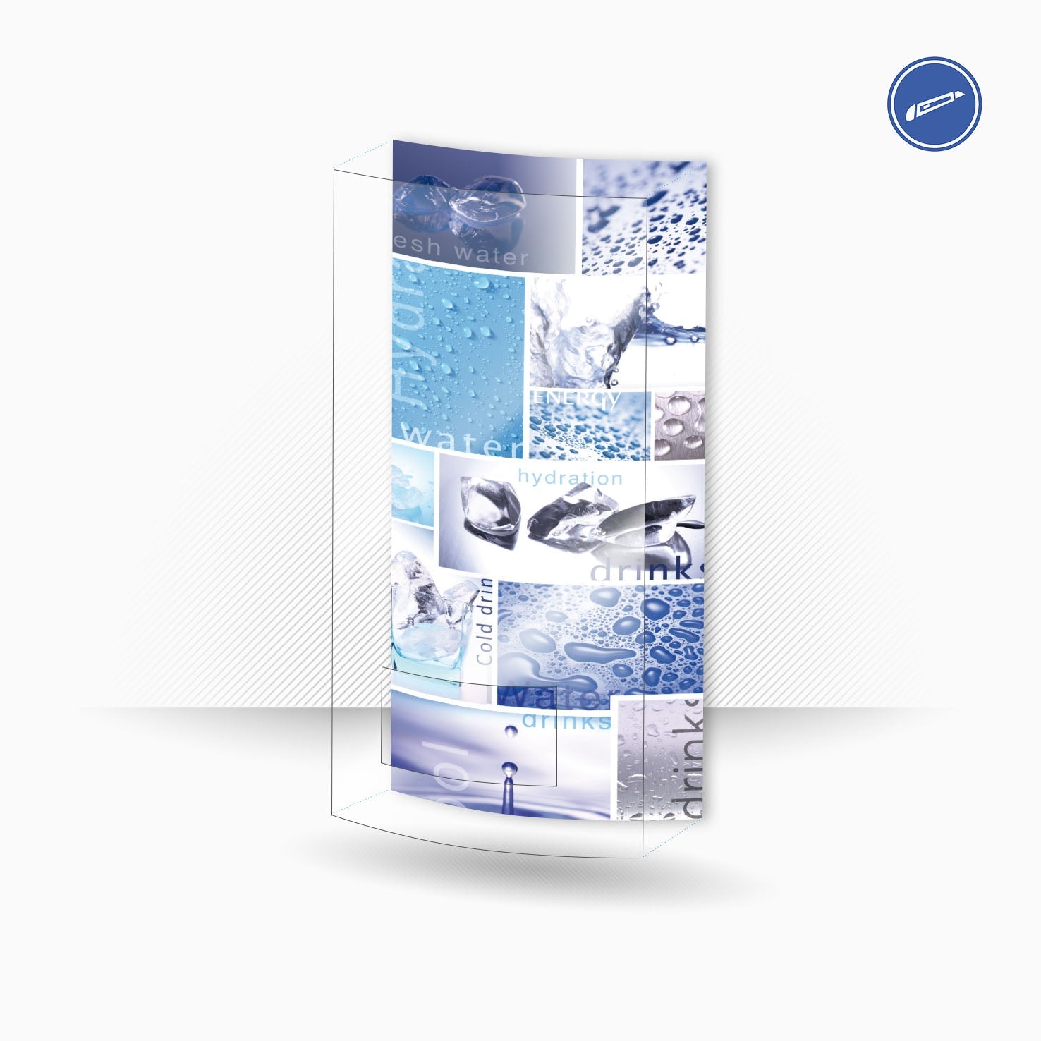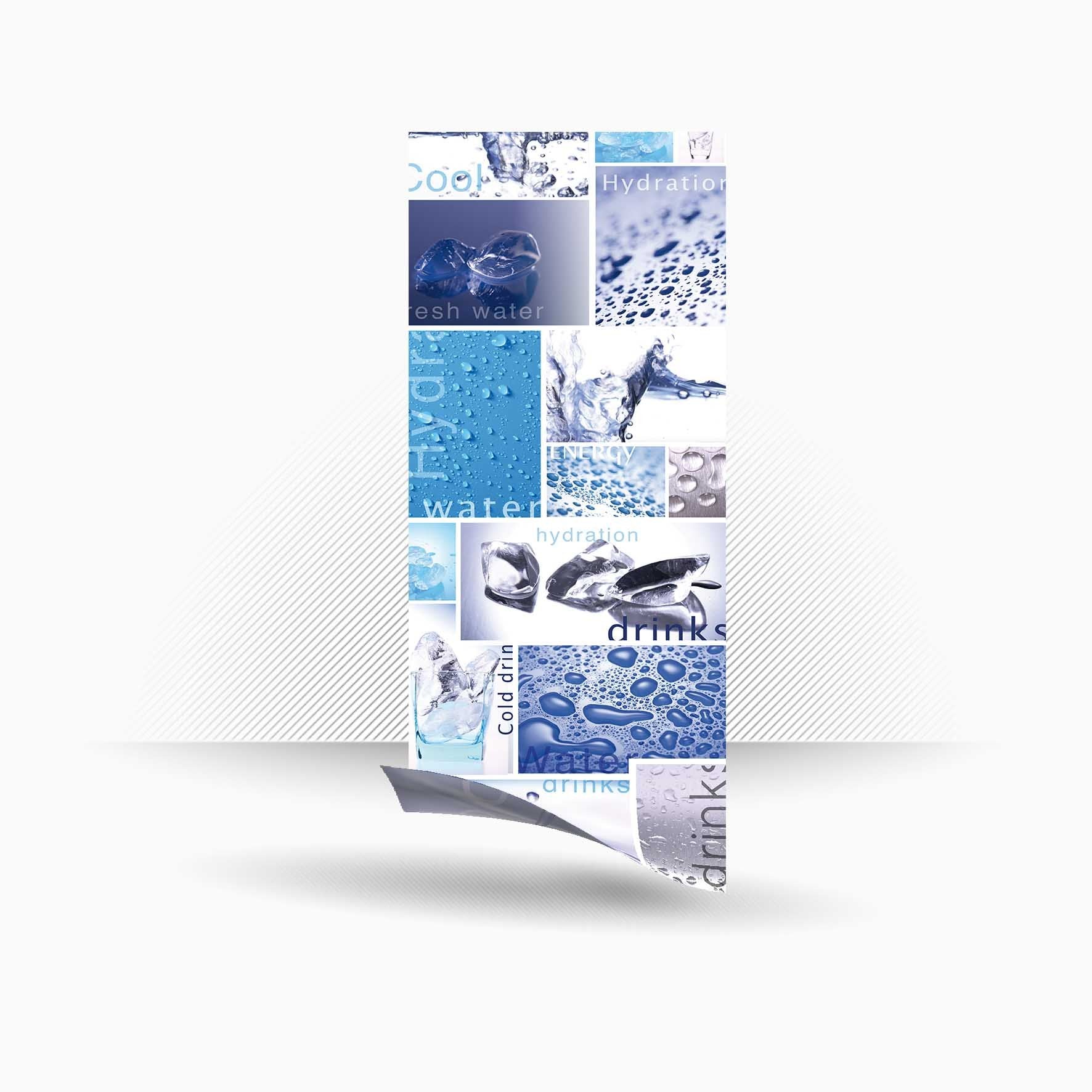 Vinyle adhésif imprimé INVERSÉ pour panneaux en polycarbonate. Il colle à l'intérieur et nécessite de couper le matériau en excès en fonction de la taille du panneau où il adhère.