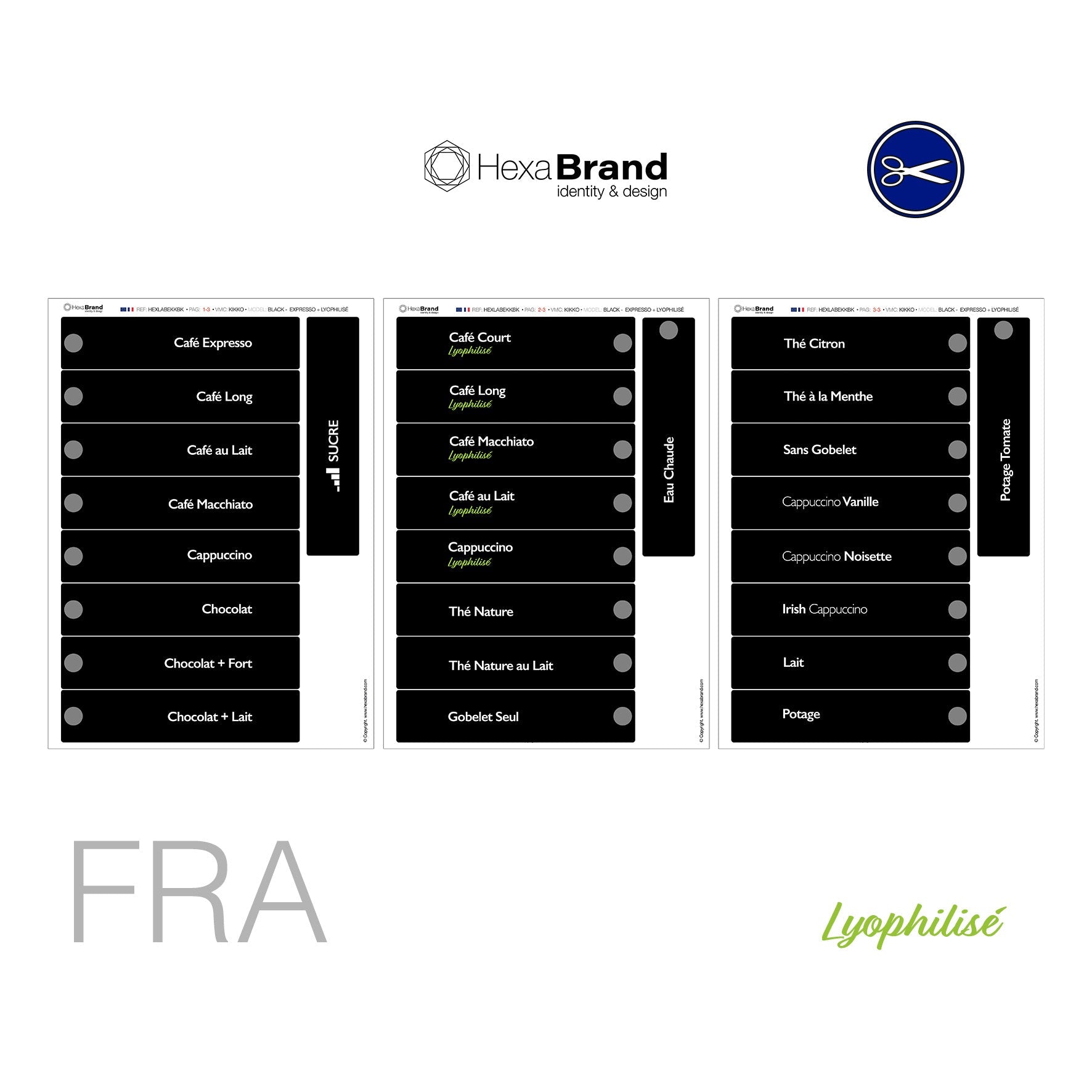 Jeu d’étiquettes découpables imprimées avec la technologie HP Latex.